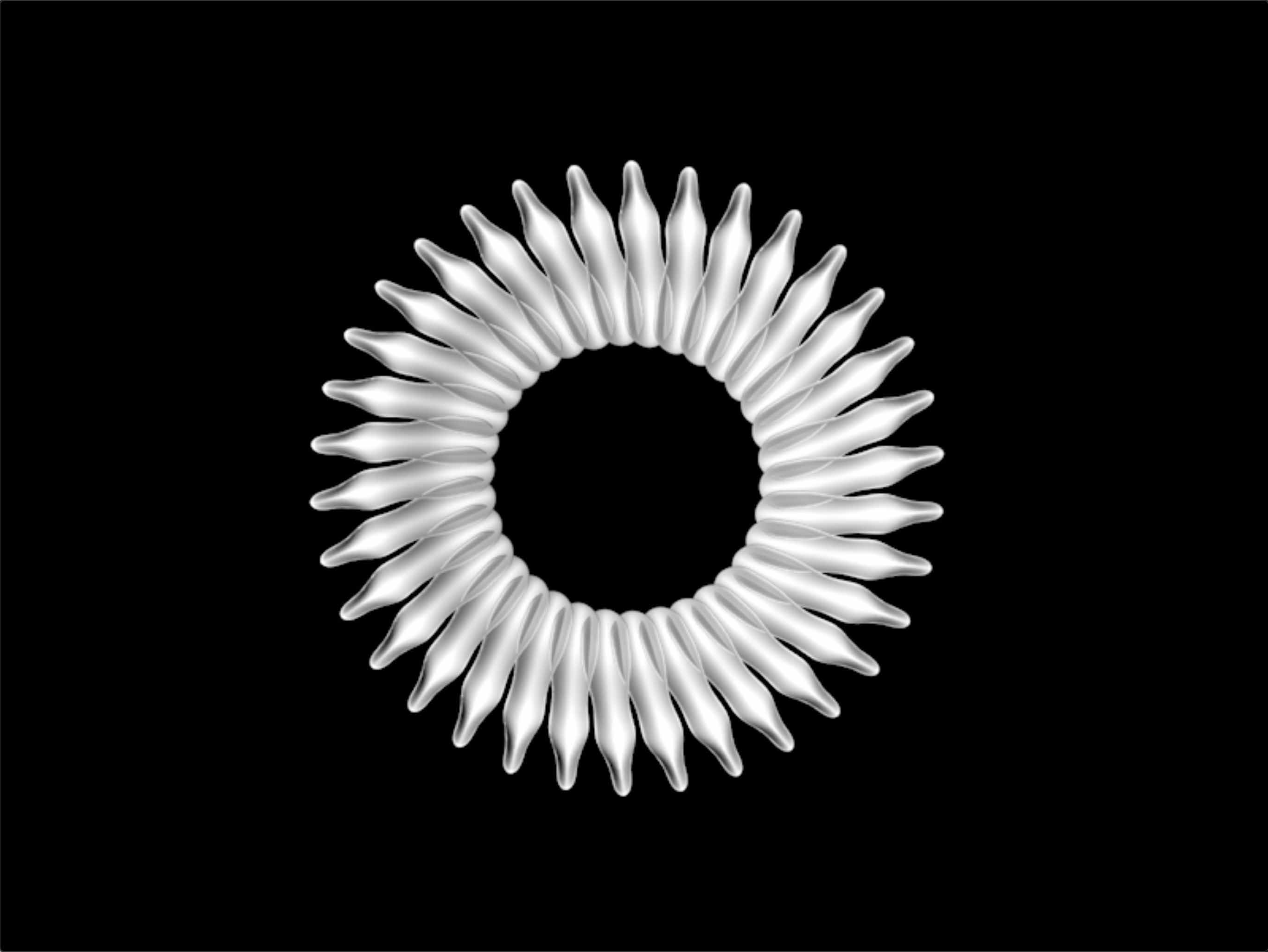 A mysterious and black universe that welcomes smooth creatures moving slowly, with a beautiful and symmetrical appearance. Music creates a tension that causes us to feel a certain fear.